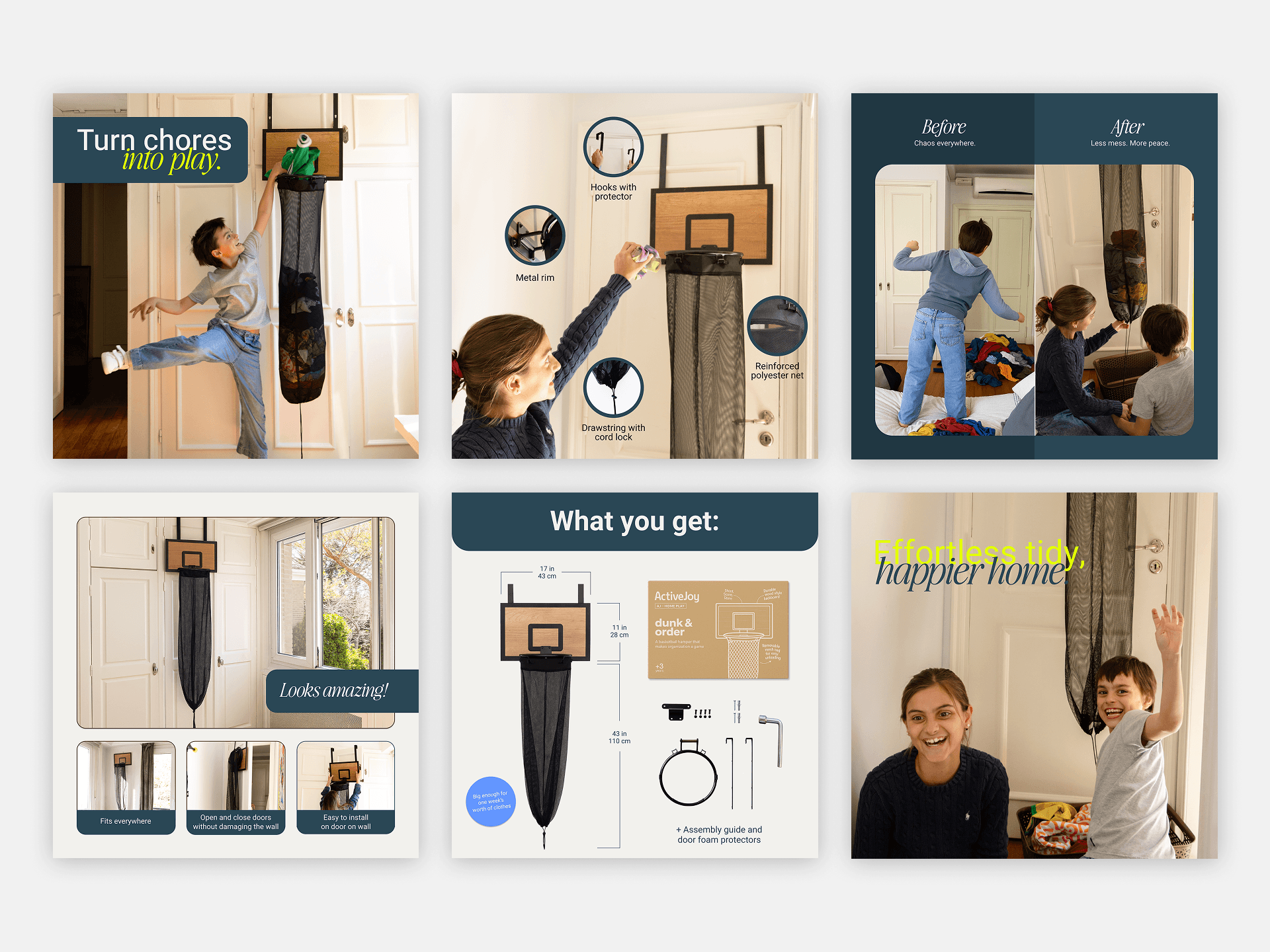 Active Joy es una marca que ofrece productos para niños en Amazon. Se desarrolló la estrategia completa para optimizar su presencia en la plataforma, incluyendo el listing y el contenido A+. El enfoque estaba en crear una estructura lógica y persuasiva, adaptada al algoritmo de Amazon. Diseñando para mejorar el rendimiento orgánico, aumentar la conversión y construir una experiencia de compra fluida y atractiva dentro del ecosistema.