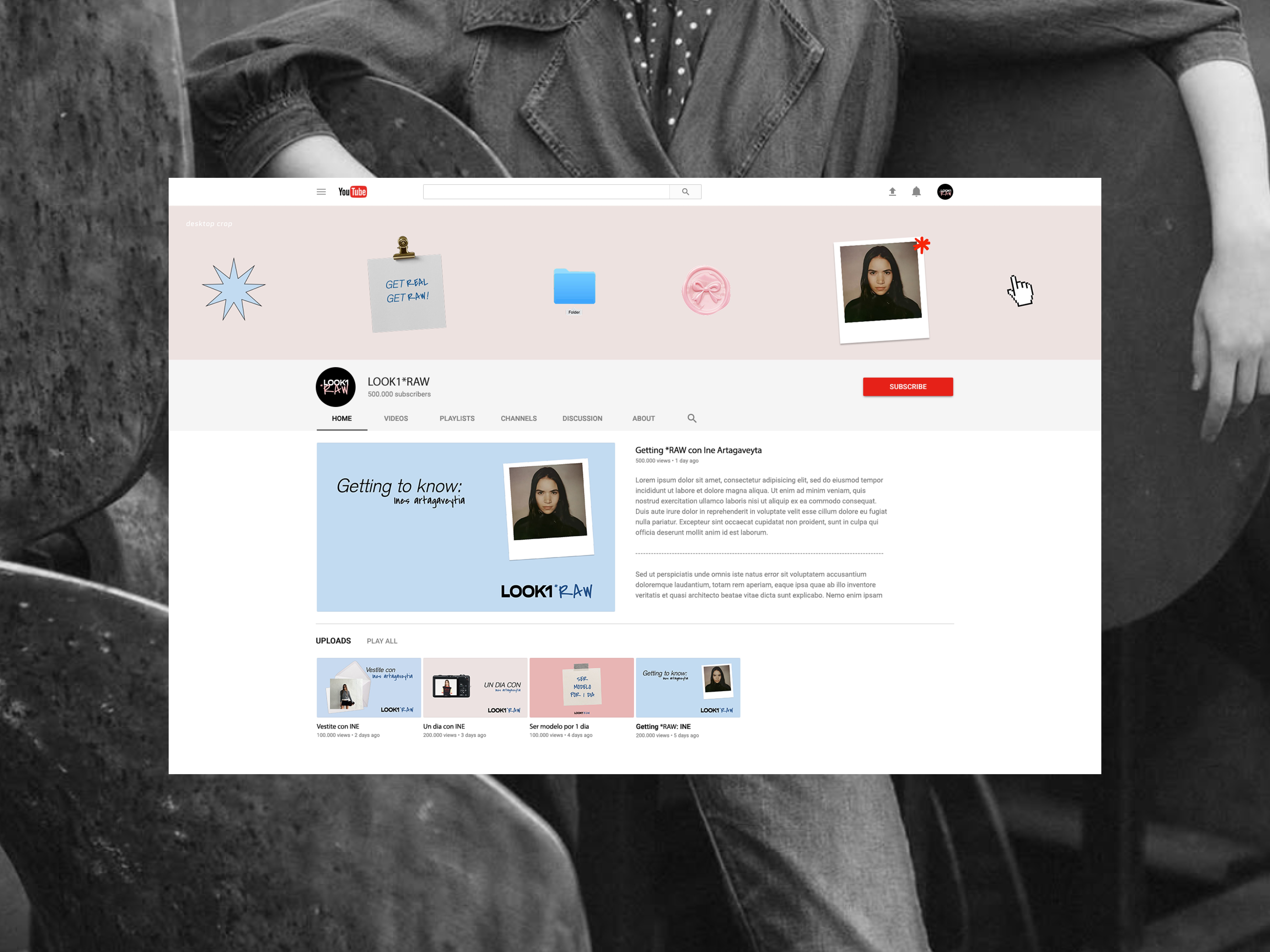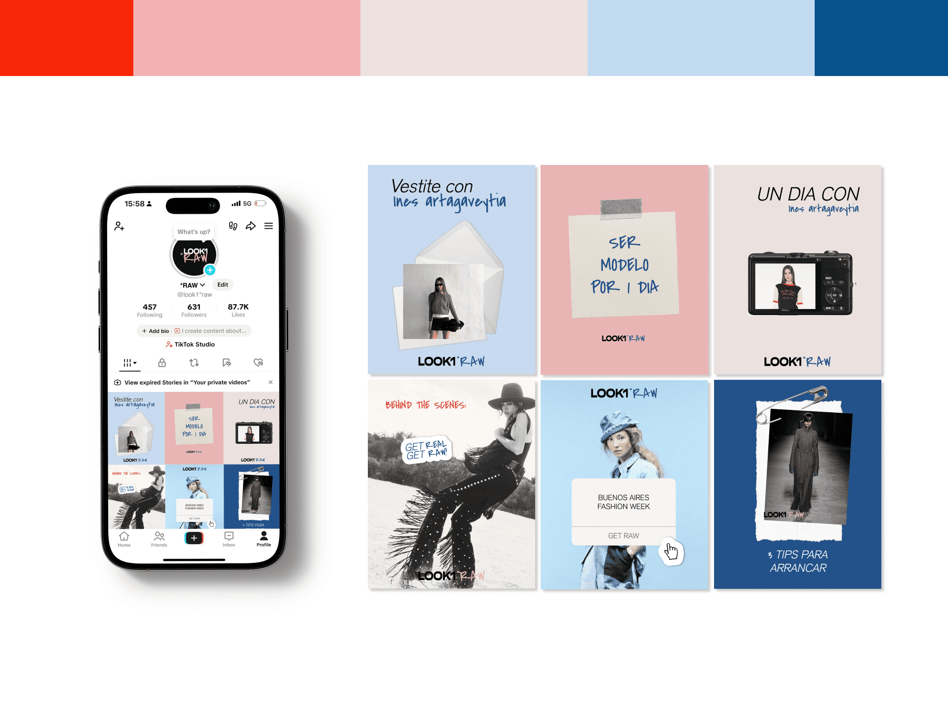 LOOK1*RAW es una submarca de LOOK1, agencia internacional de modelos. Su identidad nace para mostrar el costado más genuino y humano de la moda. GET RAW expresa la necesidad de revelar lo que suele quedar oculto: el backstage, las dinámicas entre tomas y las escenas íntimas del modelaje. La identidad principal de LOOK1 se mantiene limpia y constante y *RAW agrega emoción, textura y verdad, ampliando la narrativa de la marca.