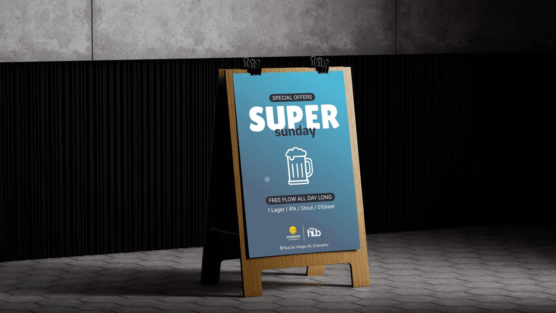 Desarrollamos la identidad visual de The Hub, el café de Experience Champéry, como una extensión coherente del universo de marca de la empresa. El proyecto incluyó el diseño de la identidad visual y sus aplicaciones, creando una identidad cálida y contemporánea que refuerza la experiencia del lugar y dialoga con el sistema visual general de la marca madre.